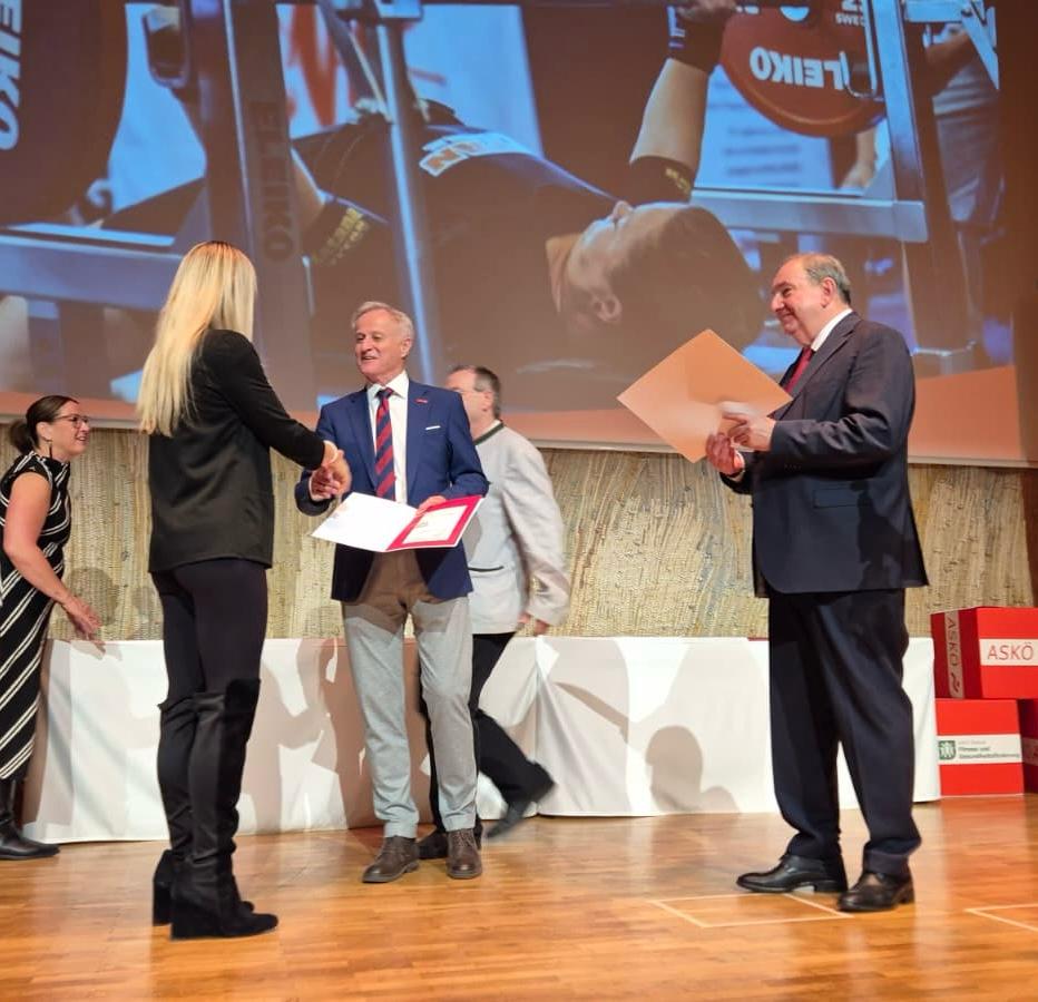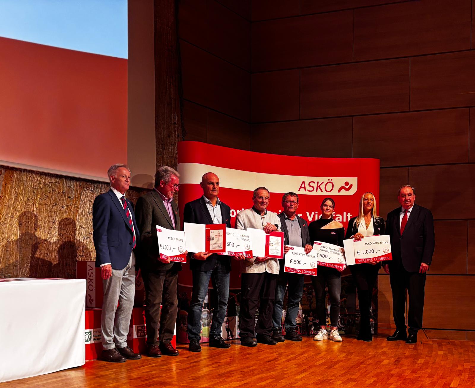 Am 21.10.2025 durfte Vereinsvorsitzende Sabine Feichtinger gemeinsam mit Konsulent Manfred Preuner (Obmann a. D.) im Brucknerhaus Linz erneut den Vereinslorbeer entgegennehmen. Die Preise werden traditionell von ASKÖ OÖ Präsident Mag. Erich Haider und dem jeweiligen Bezirksvorsitzenden verliehen – in unserem Fall von Vizepräsident, Bezirksvorsitzender Salzkammergut Mag. Max Ebenführer, MSc.